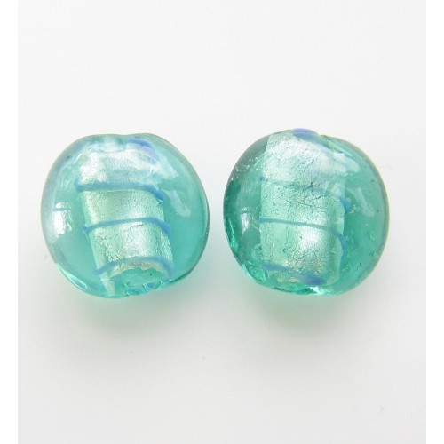 Gorgeous silver foil flat round beads, blue/green with blue stripes and a lovely lustre shine.
